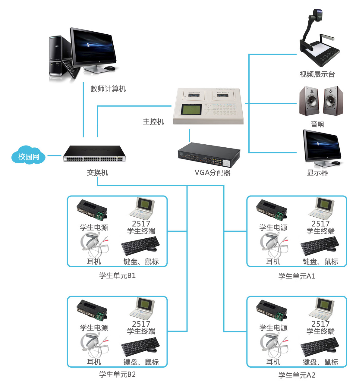 学生呼叫显示;支持8路节目任意分组广播;同声翻译练习